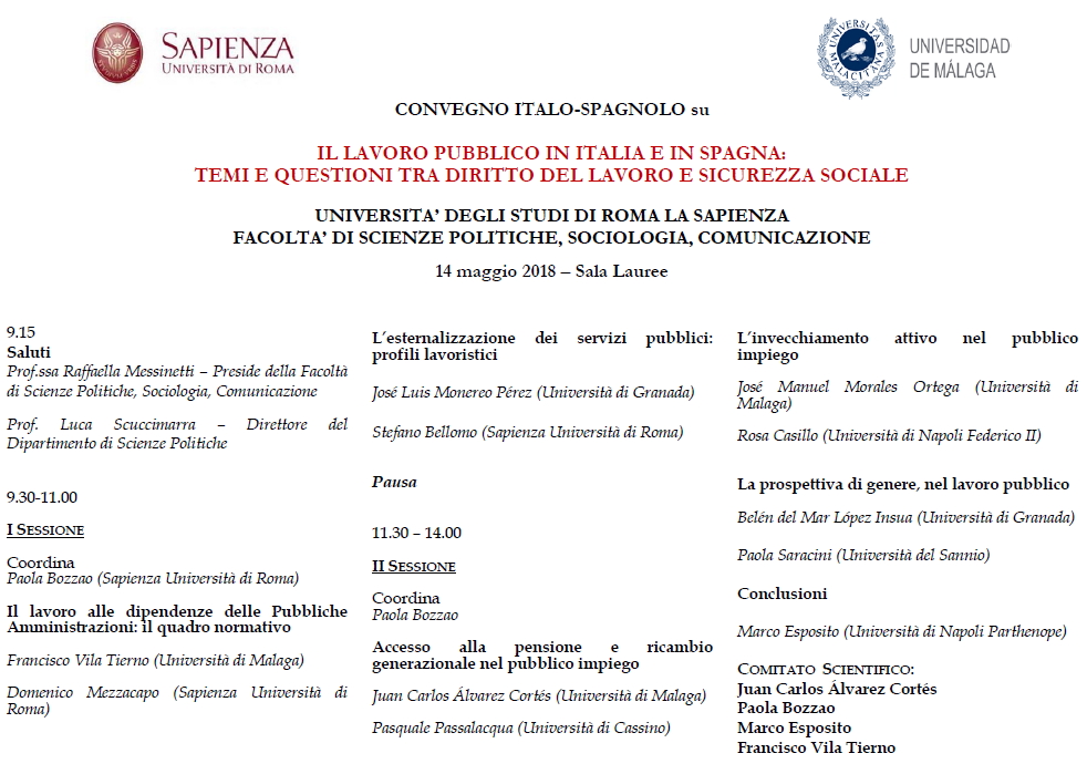 Da Lun, 14/05/2018 a Lun, 14/05/2018 Mode On-site-only 14/11/2022 ROMA - Il lavoro pubblico in Italia e in Spagna: temi e questioni tra diritto del lavoro e sicurezza sociale on-site only | Sala Lauree - ore 9.15