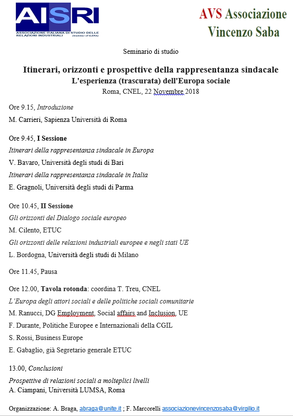 Da Gio, 22/11/2018 a Gio, 22/11/2018 Mode On-site-only 14/11/2022 ROMA - Itinerari, orizzonti e prospettive della rappresentanza sindacale - L'esperienza (trascurata) dell'Europa sociale on-site only |