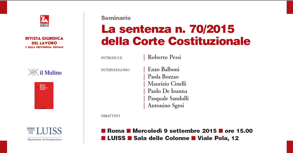 Da Mer, 09/09/2015 a Mer, 09/09/2015 Mode On-site-only 14/11/2022 ROMA - La sentenza n. 70/2015 della Corte Costituzionale on-site only | Viale Pola, 12 - ore 15:00