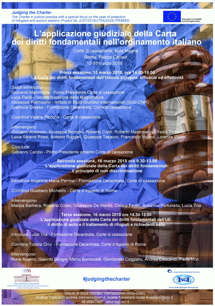 Da Gio, 15/03/2018 a Gio, 15/03/2018 Mode On-site-only 14/11/2022 ROMA | L'applicazione giudiziale della Carta dei diritti fondamentali nell'ordinamento italiano (15-16/03/2018) on-site only | Piazza Cavour - ore 14