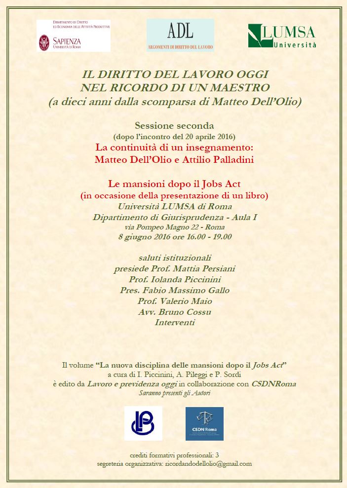 Da Mer, 08/06/2016 a Mer, 08/06/2016 Mode On-site-only 14/11/2022 ROMA - Le mansioni dopo il Jobs Act on-site only | via Pompeo Magno, 22 - ore 16