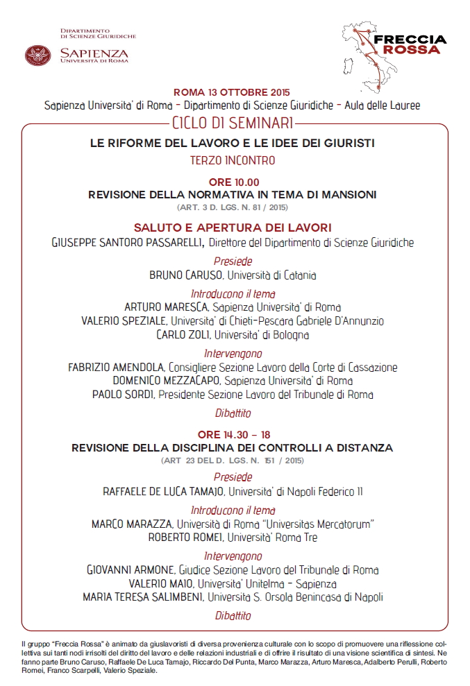 Da Mar, 13/10/2015 a Mar, 13/10/2015 Mode On-site-only 14/11/2022 ROMA - Le riforme del lavoro e le idee dei giuristi on-site only | Aula delle Lauree - ore 10