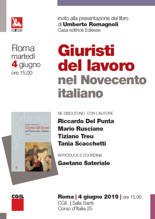 Da Mar, 04/06/2019 a Mar, 04/06/2019 Mode On-site-only 14/11/2022 ROMA - Presentazione del libro "Giuristi del lavoro nel Novecento italiano" on-site only | Corso d’Italia, 25 - ore 15