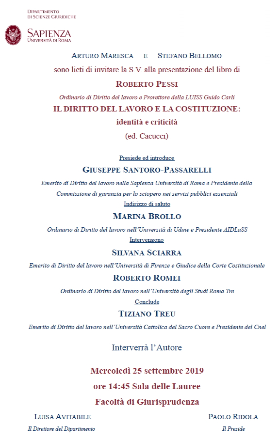 ROMA - Presentazione del libro "Il diritto del lavoro e la Costituzione: identità e criticità"