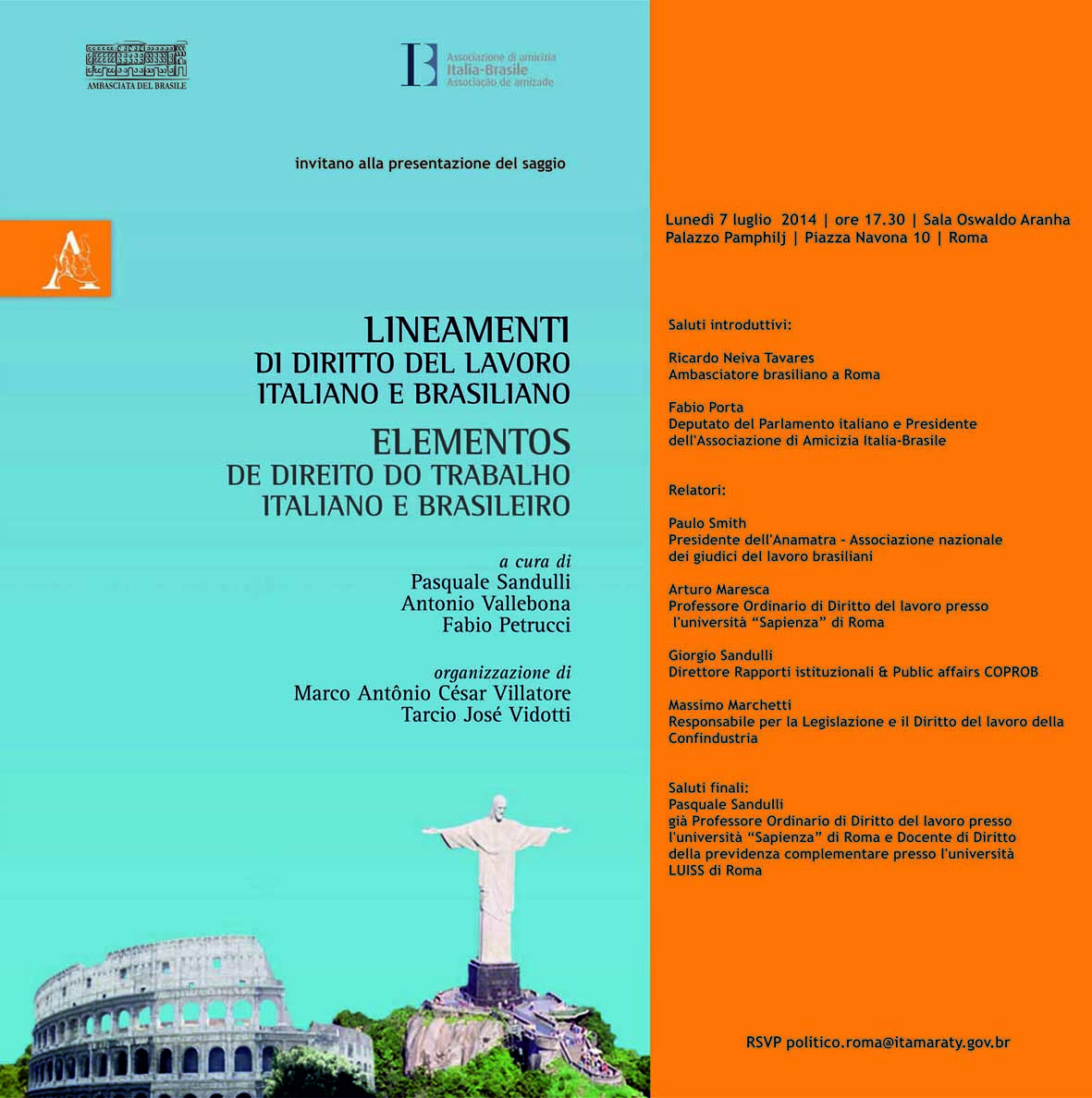 ROMA - Presentazione del saggio 'Lineamenti di Diritto del lavoro italiano e brasiliano' (a cura di P. Sandulli, A. Vallebona, F. Petrucci)