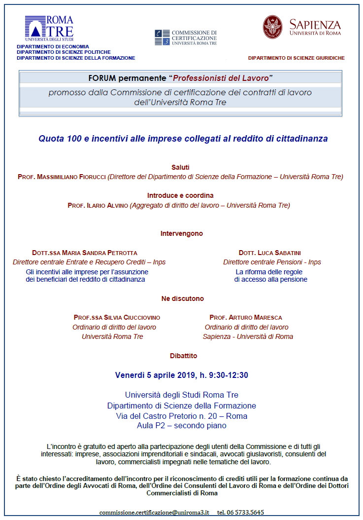 ROMA - Quota 100 e incentivi alle imprese collegati al reddito di cittadinanza