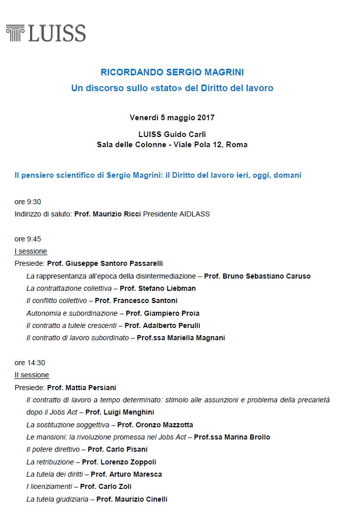 Da Ven, 05/05/2017 a Ven, 05/05/2017 Mode On-site-only 14/11/2022 ROMA - Ricordando Sergio Magrini | Il pensiero scientifico di Sergio Magrini: il Diritto del lavoro ieri, oggi, domani on-site only | Viale Pola, 12 - ore 9.30