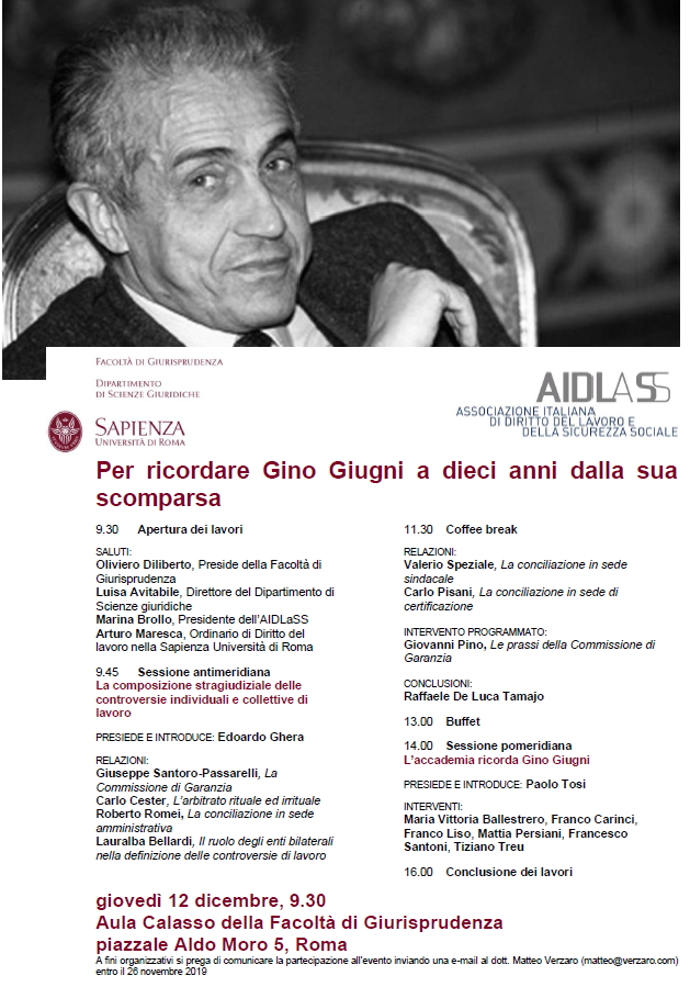 ROMA - Per ricordare Gino Giugni a dieci anni dalla sua scomparsa