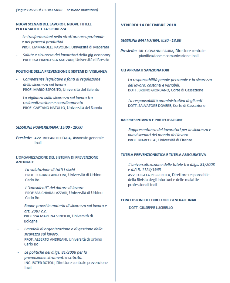 Da Mer, 12/12/2018 a Mer, 12/12/2018 Mode On-site-only 14/11/2022 ROMA - Salute e sicurezza sul lavoro a dieci anni dal D.Lgs n. 81/2008 (12-14 dicembre 2018) on-site only | Auditorium Inail - ore 14