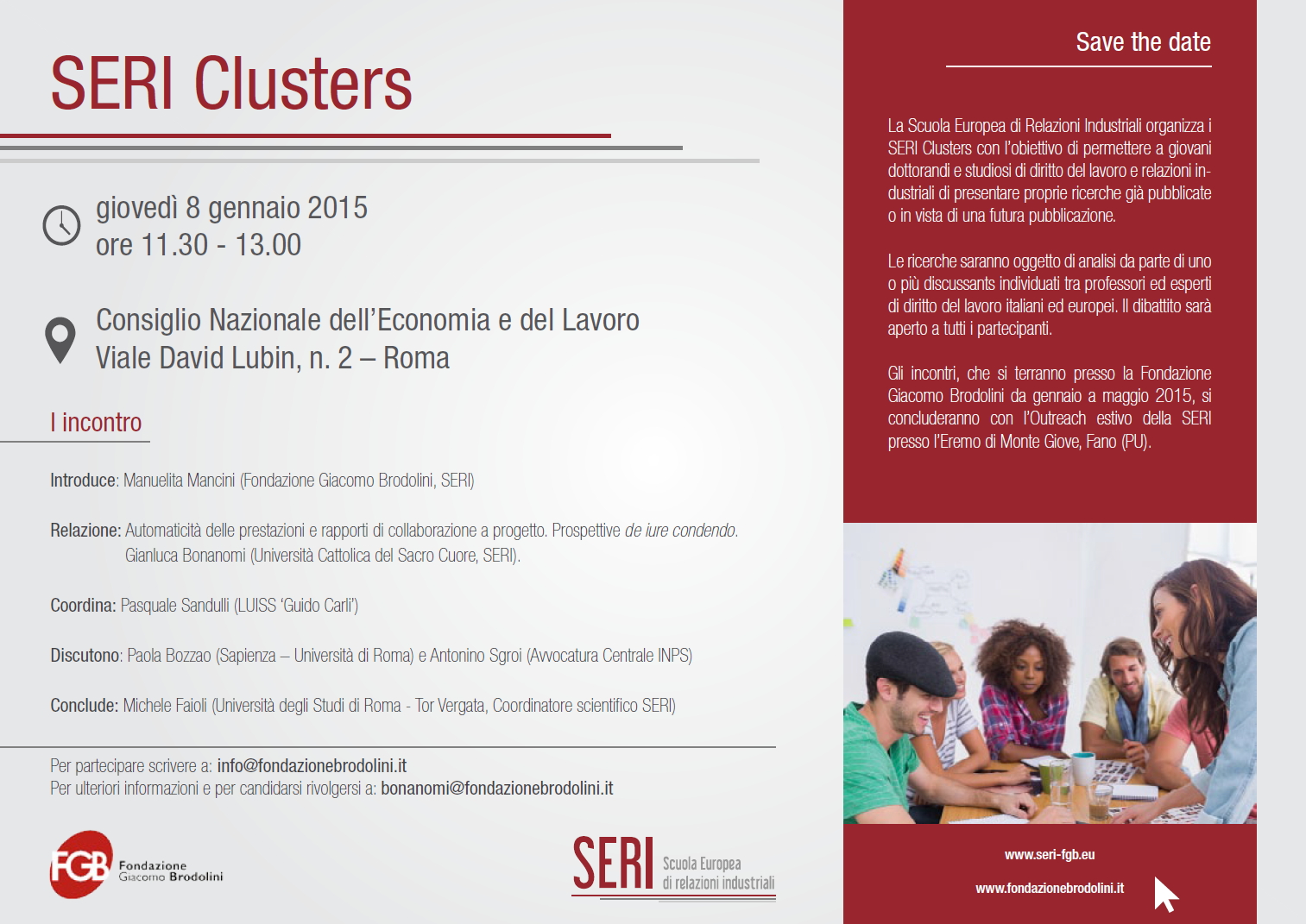 Da Gio, 08/01/2015 a Gio, 08/01/2015 Mode On-site-only 14/11/2022 ROMA - Scuola Europea di Relazioni Industriali: SERI Clusters on-site only | viale Davide Lubin, 2 - 11:30