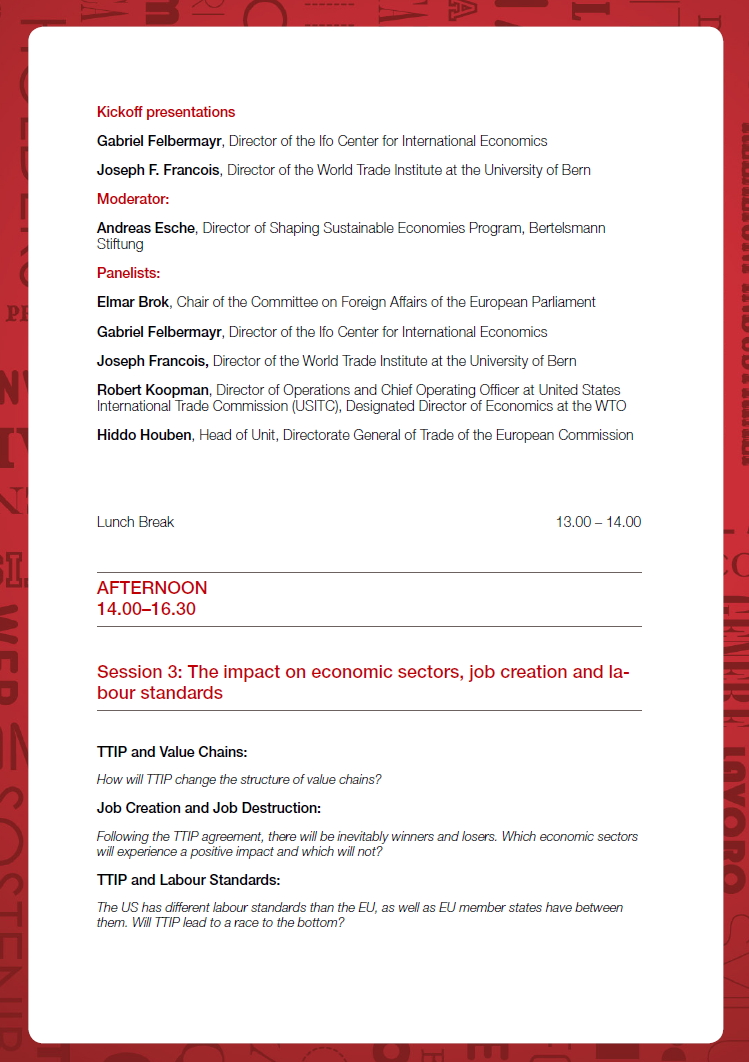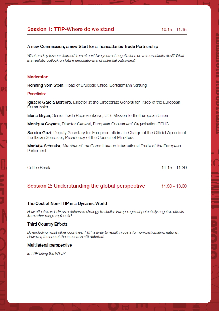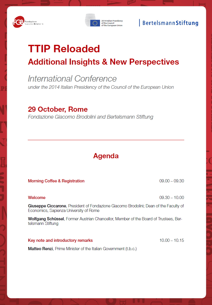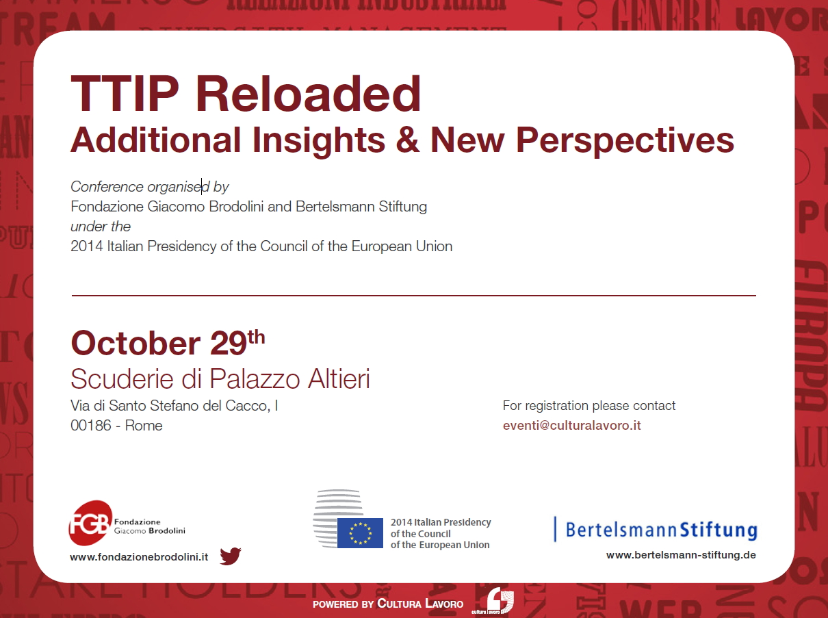 Da Mer, 29/10/2014 a Mer, 29/10/2014 Mode On-site-only 14/11/2022 ROMA - TTIP Reloaded: Additional Insights & New Perspectives on-site only | via di Santo Stefano del Cacco, I