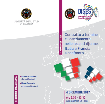 Da Lun, 04/12/2017 a Lun, 04/12/2017 Mode On-site-only 14/11/2022 SALERNO - Contratto a termine e licenziamento nelle recenti riforme: Italia e Francia a confronto on-site only | Aula Gabriele De Rosa - ore 9.30