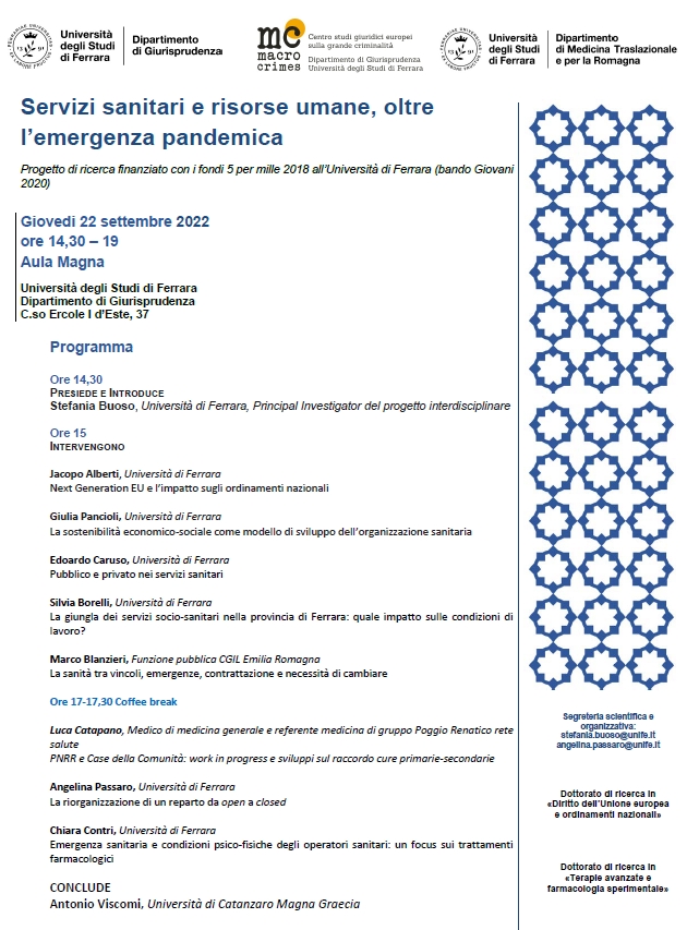 L'evento si potrà seguire anche su Unife Channel al seguente link: https://youtu.be/nttMMFOLmw0