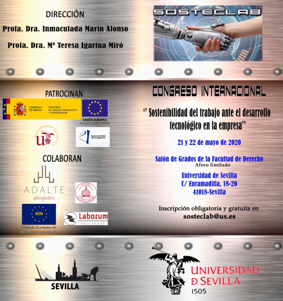 Da Gio, 21/05/2020 a Gio, 21/05/2020 Mode On-site-only 14/11/2022 SEVILLA - Sostenibilidad del trabajo ante el desarrollo tecnológico en la empresa (21 y 22 de mayo de 2020) on-site only | Call for paper (Plazo máximo: 8 de mayo de 2020)