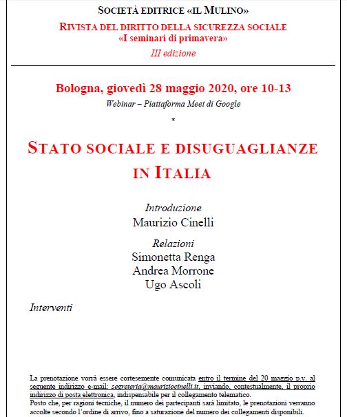 Da Gio, 28/05/2020 a Gio, 28/05/2020 Mode Online-only 14/11/2022 Stato sociale e disuguaglianze in Italia online only | ore 10 br />br />(download locandina in formato .span style="font-weight: bold;">a href="http://csdle.lex.unict.it/archive/uploads/up_752011121.pdf" target="_self">pdf/a>/span>)