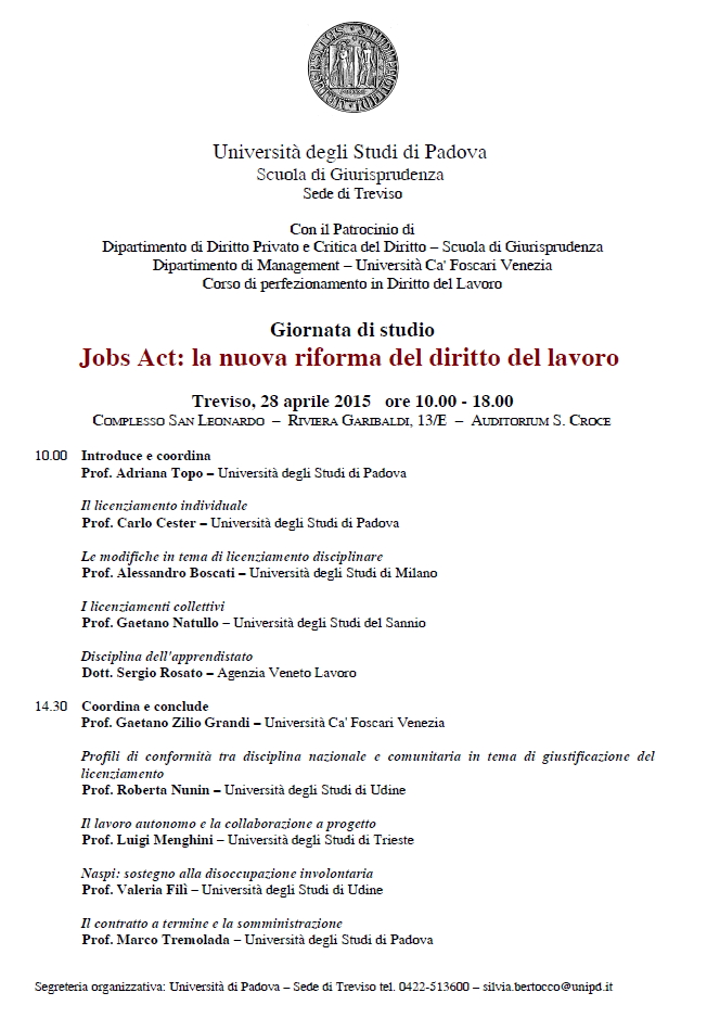 Da Mar, 28/04/2015 a Mar, 28/04/2015 Mode On-site-only 14/11/2022 TREVISO - Jobs Act: la nuova riforma del diritto del lavoro on-site only | Riviera Garibaldi, 13/E - 10.00