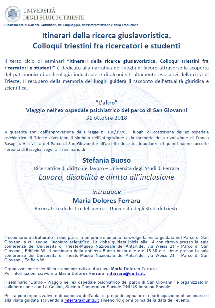 TRIESTE - Itinerari della ricerca giuslavoristica. Colloqui triestini fra ricercatori e studenti
