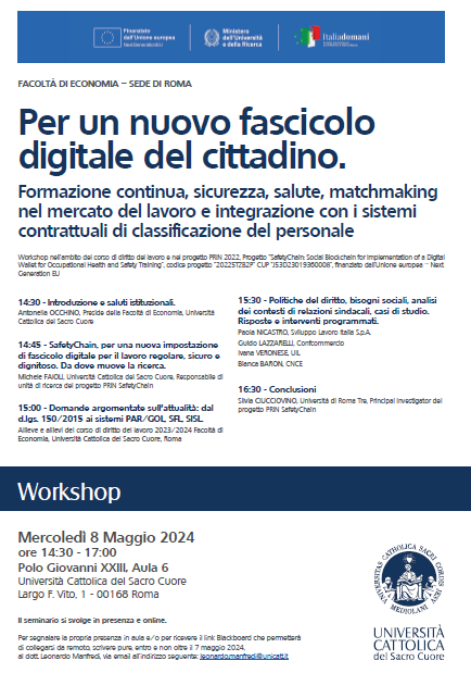 Per segnalare la propria presenza in aula e/o per ricevere il link Blackboard che permetterà di collegarsi da remoto, scrivere pure, entro e non oltre il 7 maggio 2024, al dott. Leonardo Manfredi, via email all’indirizzo seguente: leonardo.manfredi@unicatt.it