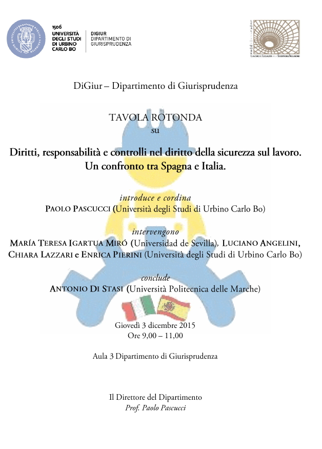Da Gio, 03/12/2015 a Gio, 03/12/2015 Mode On-site-only 14/11/2022 URBINO - Diritti, responsabilità e controlli nel diritto della sicurezza sul lavoro | Un confronto tra Spagna e Italia on-site only | Dipartimento di Giurisprudenza - 9:00