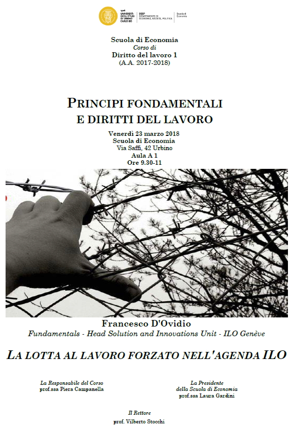 Da Ven, 23/03/2018 a Ven, 23/03/2018 Mode On-site-only 14/11/2022 URBINO - Principi fondamentali e diritti del lavoro on-site only | Via Saffi, 42 - ore 9.30
