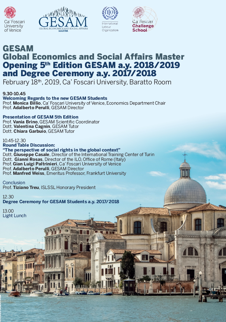 VENEZIA - Apertura della 5° Edizione del Master GESAM e Cerimonia di consegna dei diplomi | Tavola rotonda "La prospettiva dei diritti sociali nel contesto globale"
