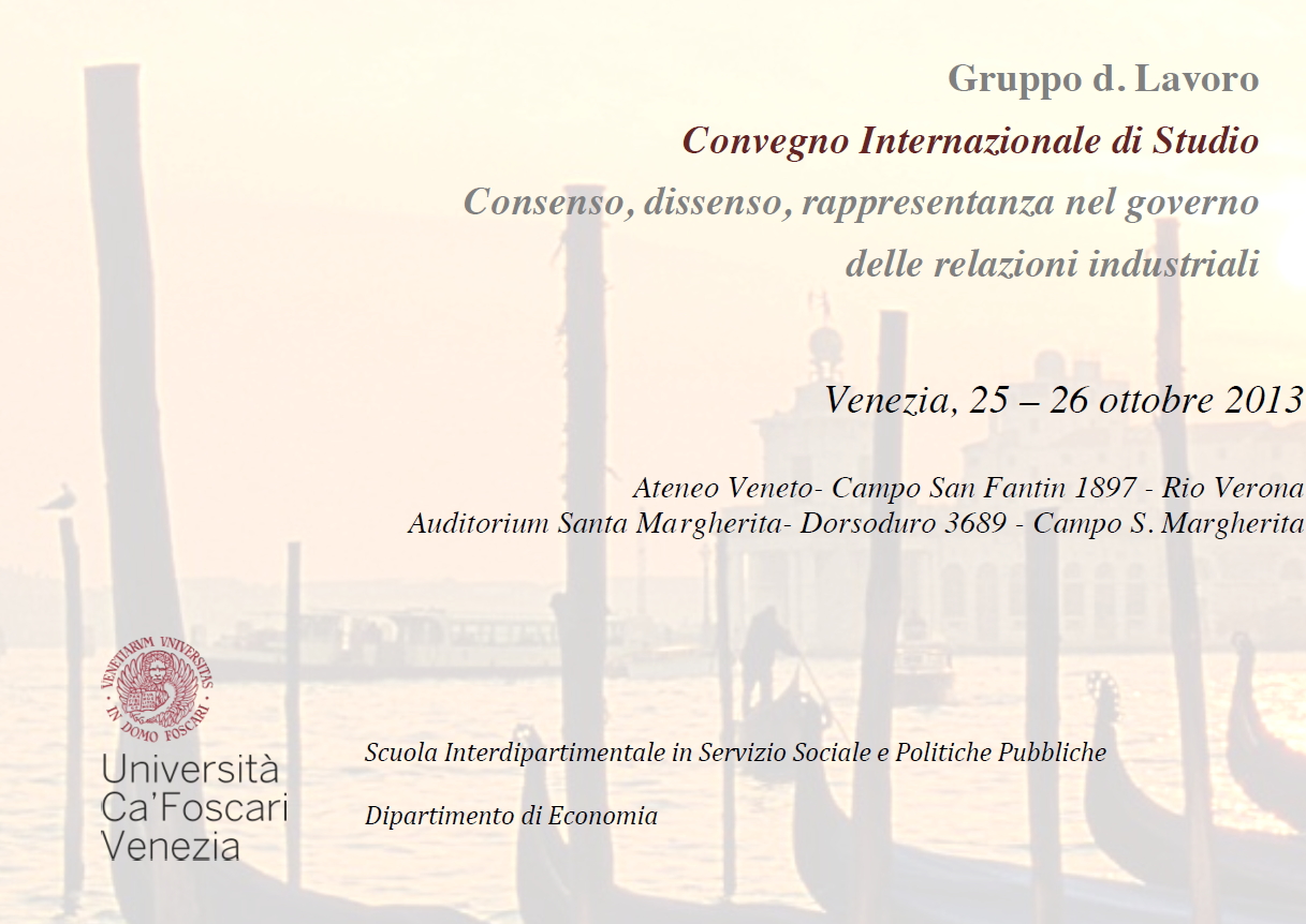 VENEZIA - Consenso, dissenso, rappresentanza nel governo delle relazioni industriali. Convegno Internazionale di Studio (25-26 ottobre 2013)