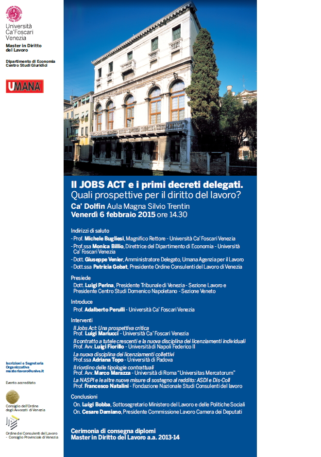 VENEZIA - Il Jobs Act e i primi decreti delegati. Quali prospettive per il diritto del lavoro?