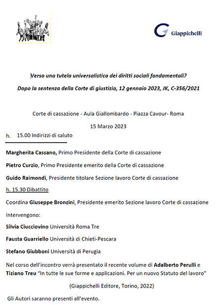 Nel corso dell’incontro verrà presentato il recente volume di Adalberto Perulli e Tiziano Treu “In tutte le sue forme e applicazioni. Per un nuovo Statuto del lavoro” (Giappichelli Editore, Torino, 2022)