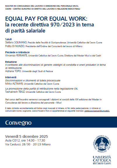 Equal Pay for Equal Work: la recente direttiva 970/2023 in tema di parità salariale