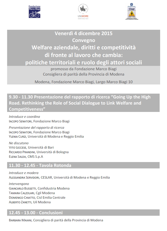 MODENA - Welfare aziendale, diritti e competitività di fronte al lavoro che cambia: politiche territoriali e ruolo degli attori sociali