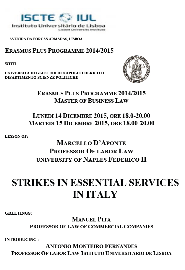 Da Lun, 14/12/2015 a Lun, 14/12/2015 Mode On-site-only 14/11/2022 NAPOLI - Strikes in Essential Services in Italy (14-15 dicembre 2015) on-site only | Dipartimento Scienze Politiche - ore 18