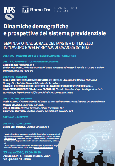 Data la capienza limitata della sala, per partecipare in presenza si prega di inviare una mail entro il 18.03.2026 a master.inps@uniroma3.it25