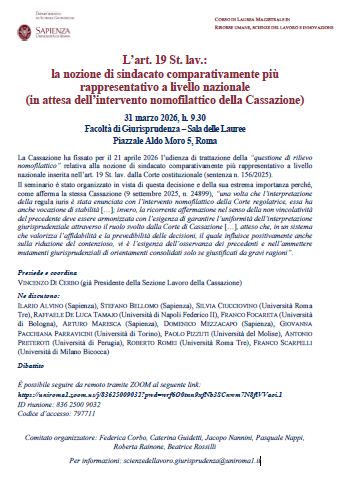 Per informazioni: scienzedellavoro.giurisprudenza@uniroma1.it