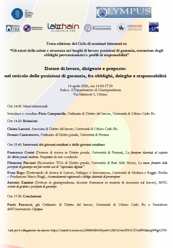 “Gli attori della salute e sicurezza nei luoghi di lavoro: posizioni di garanzia, estensione degli obblighi prevenzionistici e profili di responsabilità”